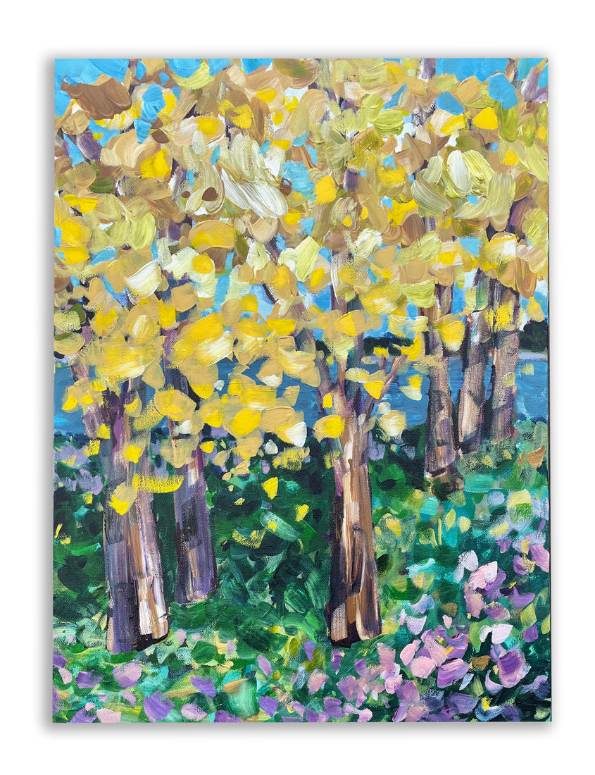 Yellow Trees - Abstract Landscape Painting 18x24in